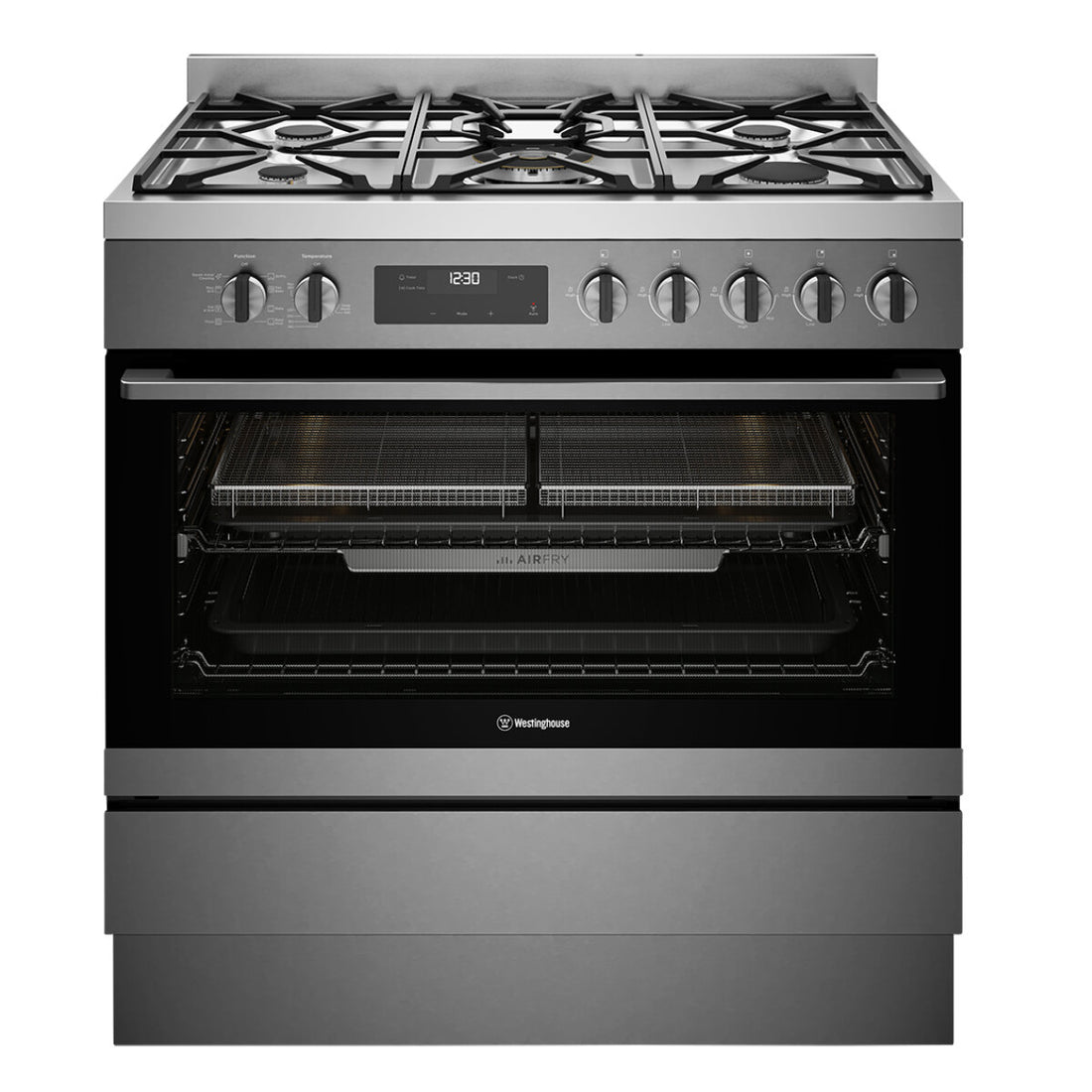 Westinghouse 90cm Dual Fuel Freestanding Cooker with AirFry Dark Stainless Steel WFE9516DD