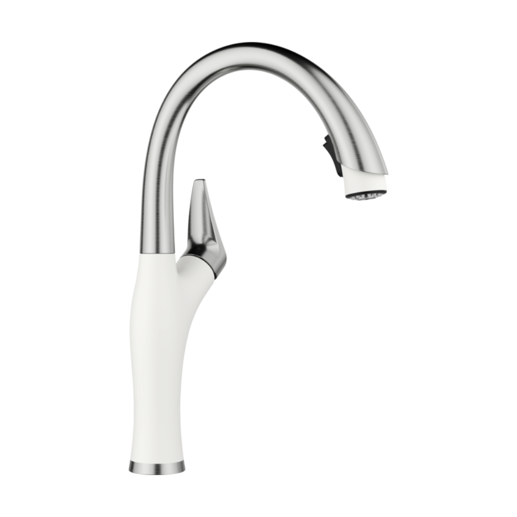 Blanco Artona High Arch Pull Down Spray Mixer Tap White & PVD Steel ARTONASW