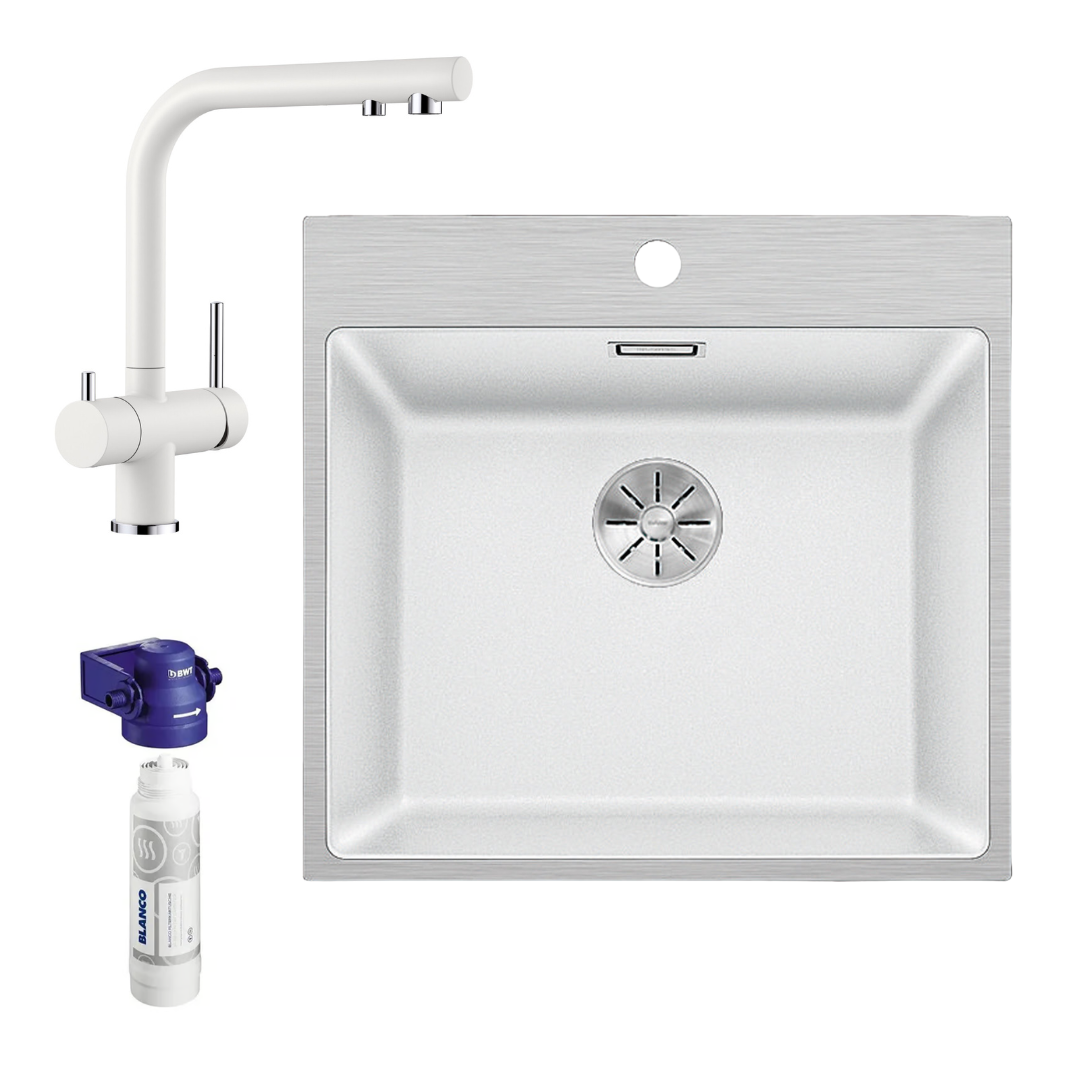 Blanco White Sink & Filtered Mixer Pack SUB500IFAWK5 + FONTASWF + BWTFILTER