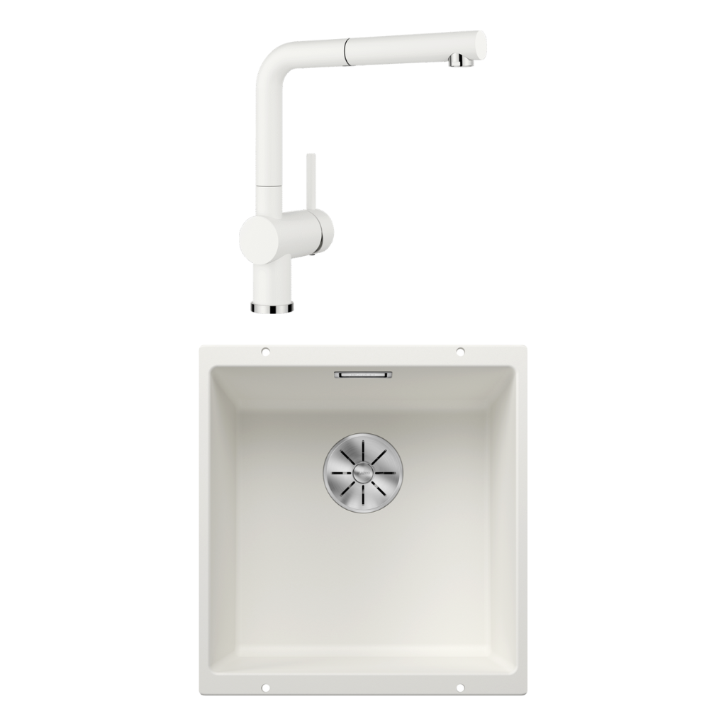Blanco Subline Single Bowl Sink & LINUS-S Pull-Out Mixer White SUBLINE400UWK5 + LINUSSW