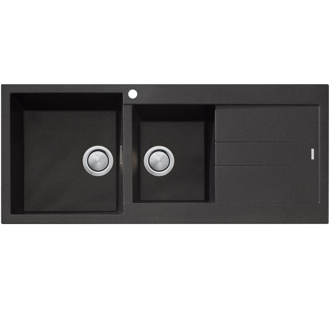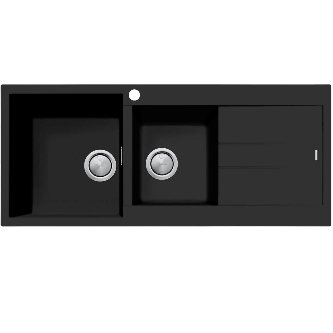 Oliveri Santorini 1 & 3/4 Bowl Topmount Sink With Right Hand Drainer Matte Black ST-MB1511OF