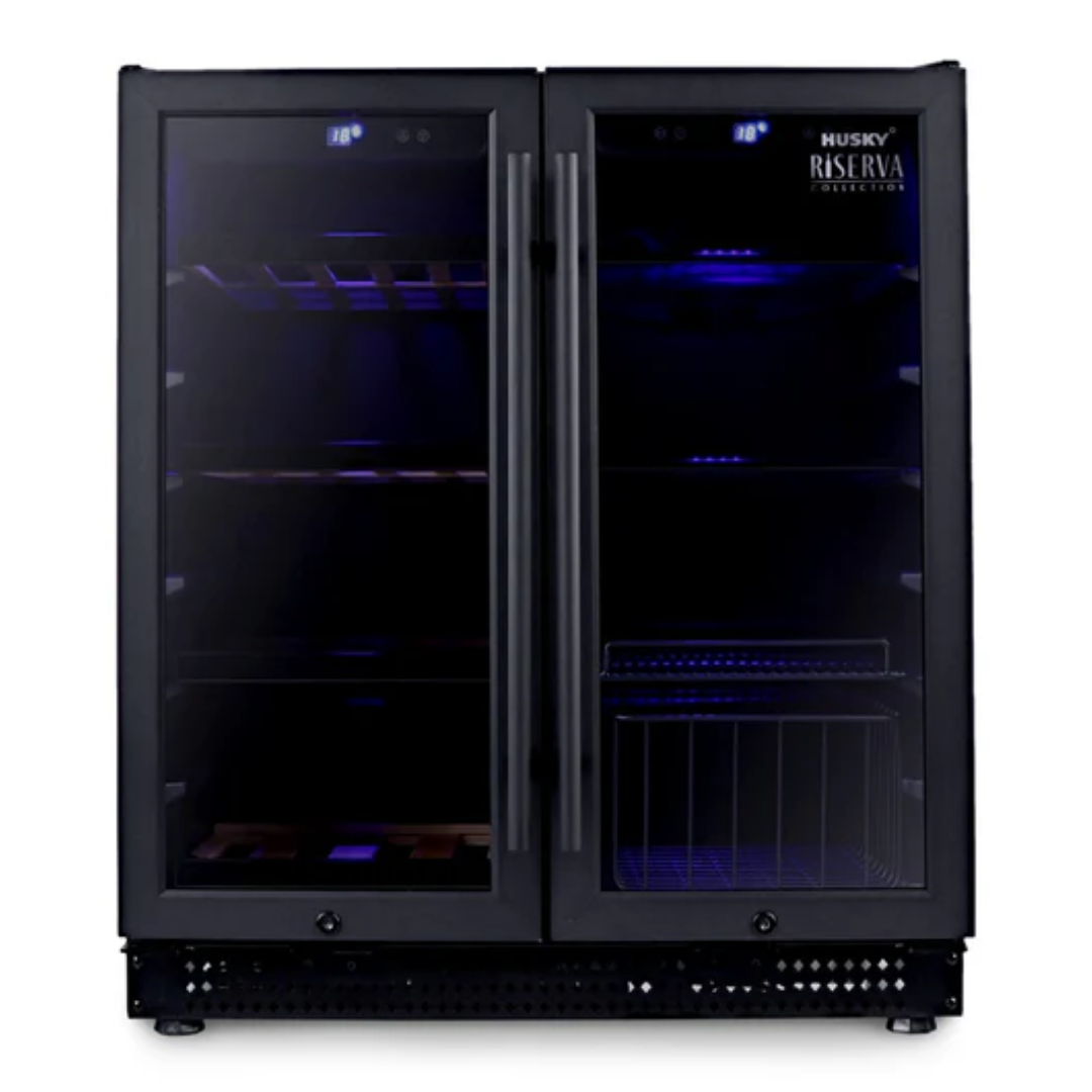 Husky Riserva 168L Double Door Dual Zone Wine Fridge Black HUSWS66MBZY