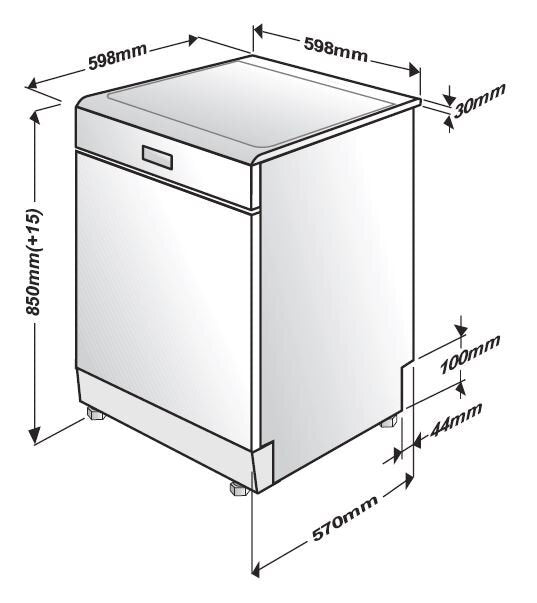 Product Height: 850 mm Product Width: 598 mm Product Depth: 600 mm