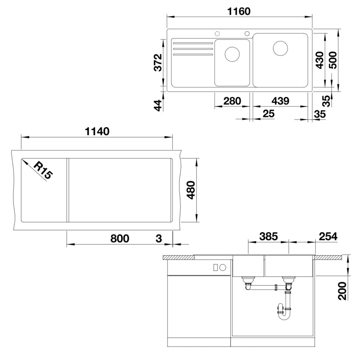 Blanco Bowl and 3/4 Inset Sink with Right Hand Drainer Black NAYA8SBK5