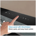 The sleek glass panel with DirectSelect touch control ensures effortless operation while also protecting cabinetry from steam and vapour. Integrated LED lighting with adjustable brightness and colour temperature provides clear visibility and ambiance control, tailored to any cooking environment.