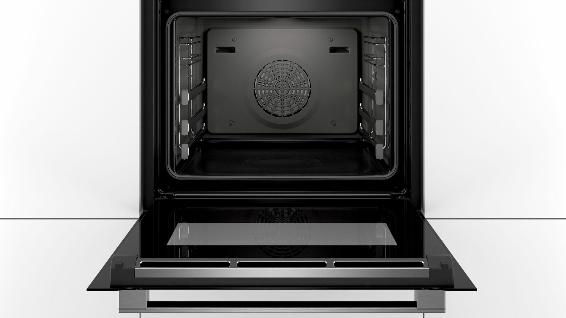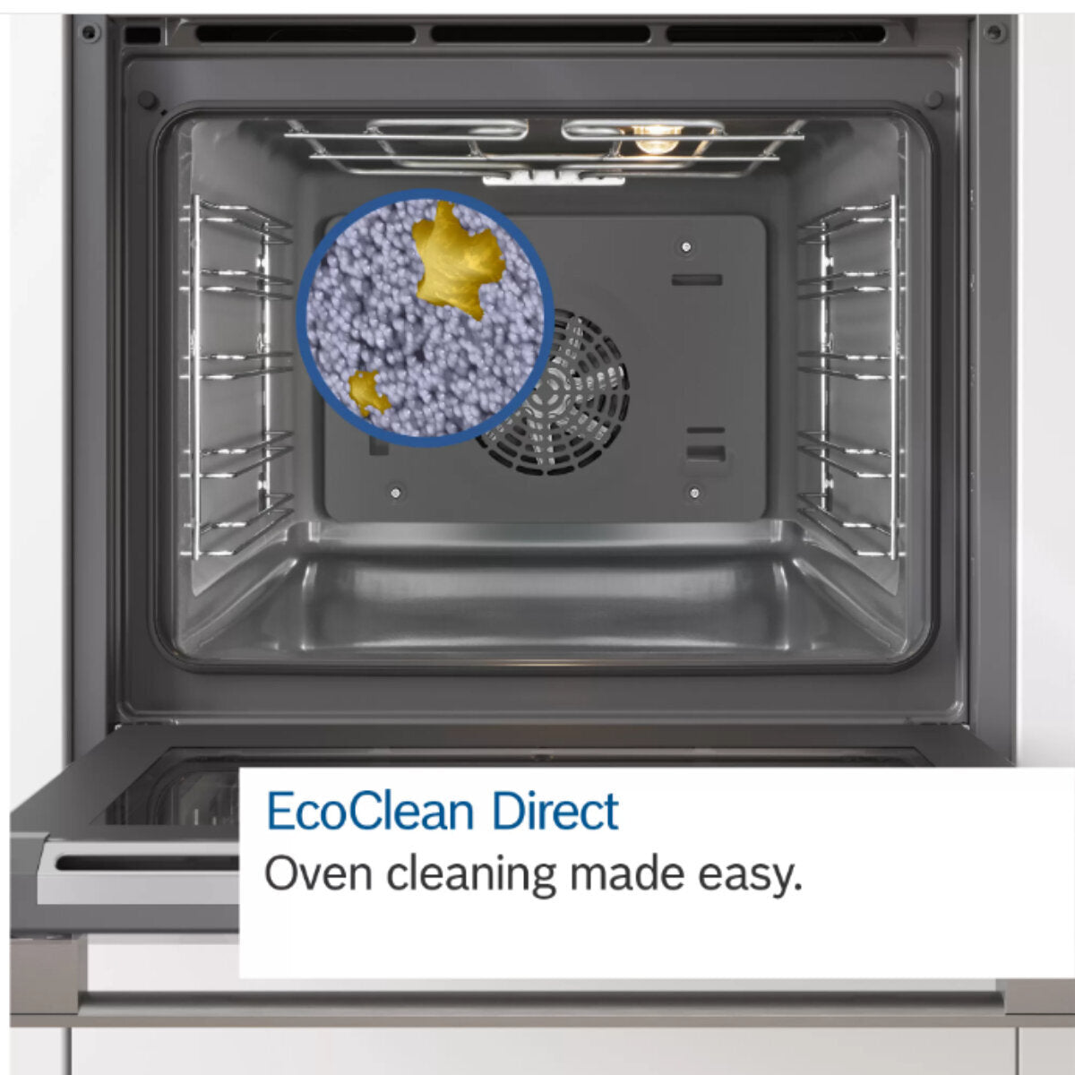 Bosch’s EcoClean Direct means cleaning the interior is effortless. This special coating within the cavity absorbs grime and residue. The oven door is triple glazed, which improves heat efficiency as well as helps to keep the exterior of the door cooler to the touch during cooking.