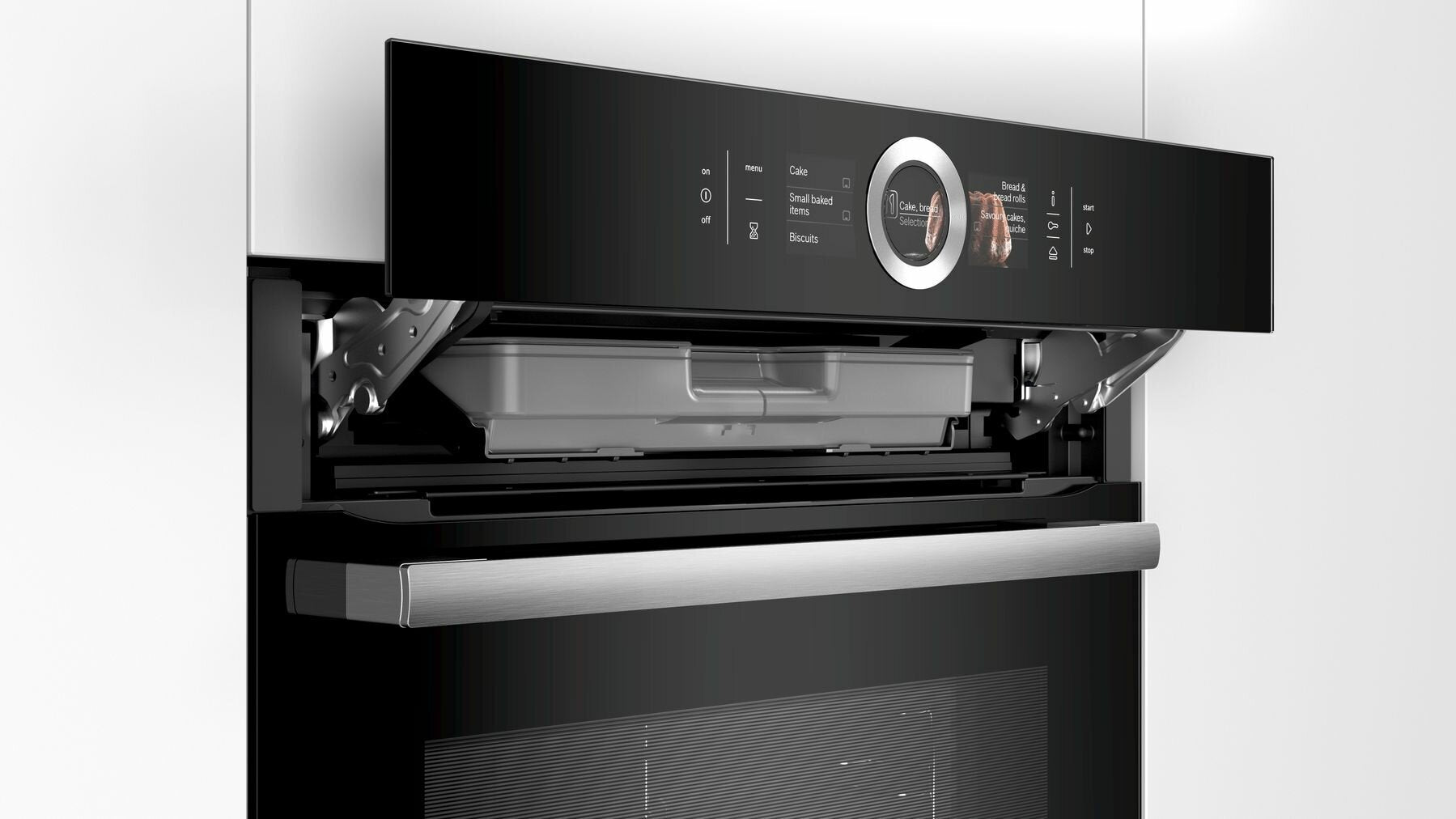 This German Made Bosch Serie 8 built-in oven takes care of the technical side of cooking by using intelligent automatic cooking technologies. Everyday cooks can enjoy professional results at home.