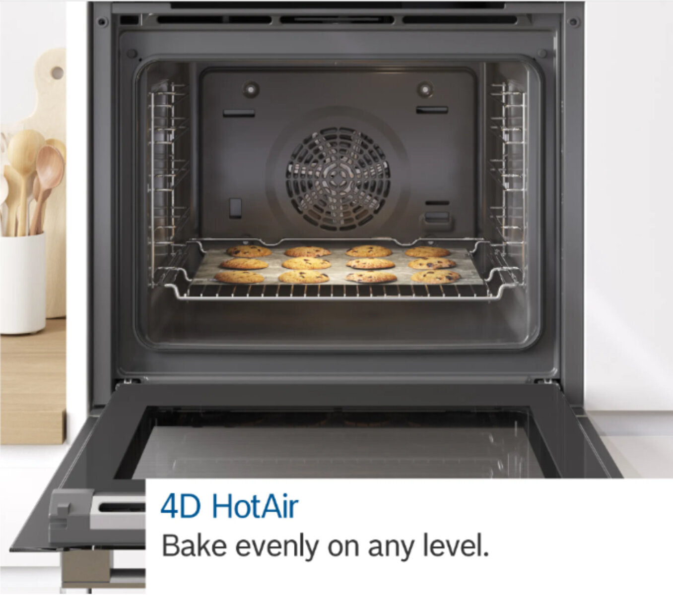 This oven cleverly uses Bosch’s 4D HotAir so you can achieve superb baking and roasting results for large dishes across multiple levels. This system allows you to cook multiple dishes on up to four levels at the same time without your dishes’ unique flavours intermingling.