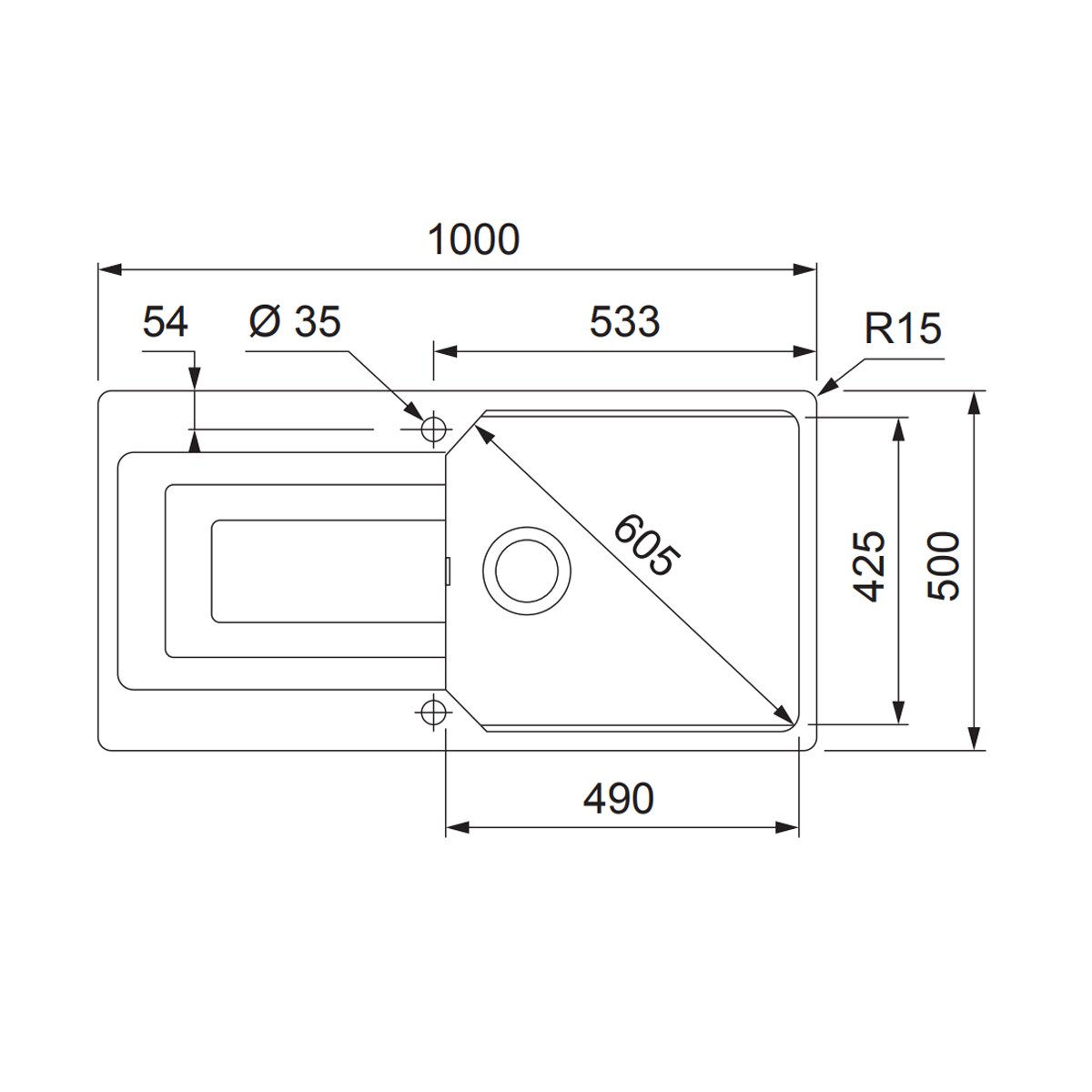 Franke Urban Fraganite Single Bowl Sink with Left Hand Drainer Onyx UBG611-100ONLHD