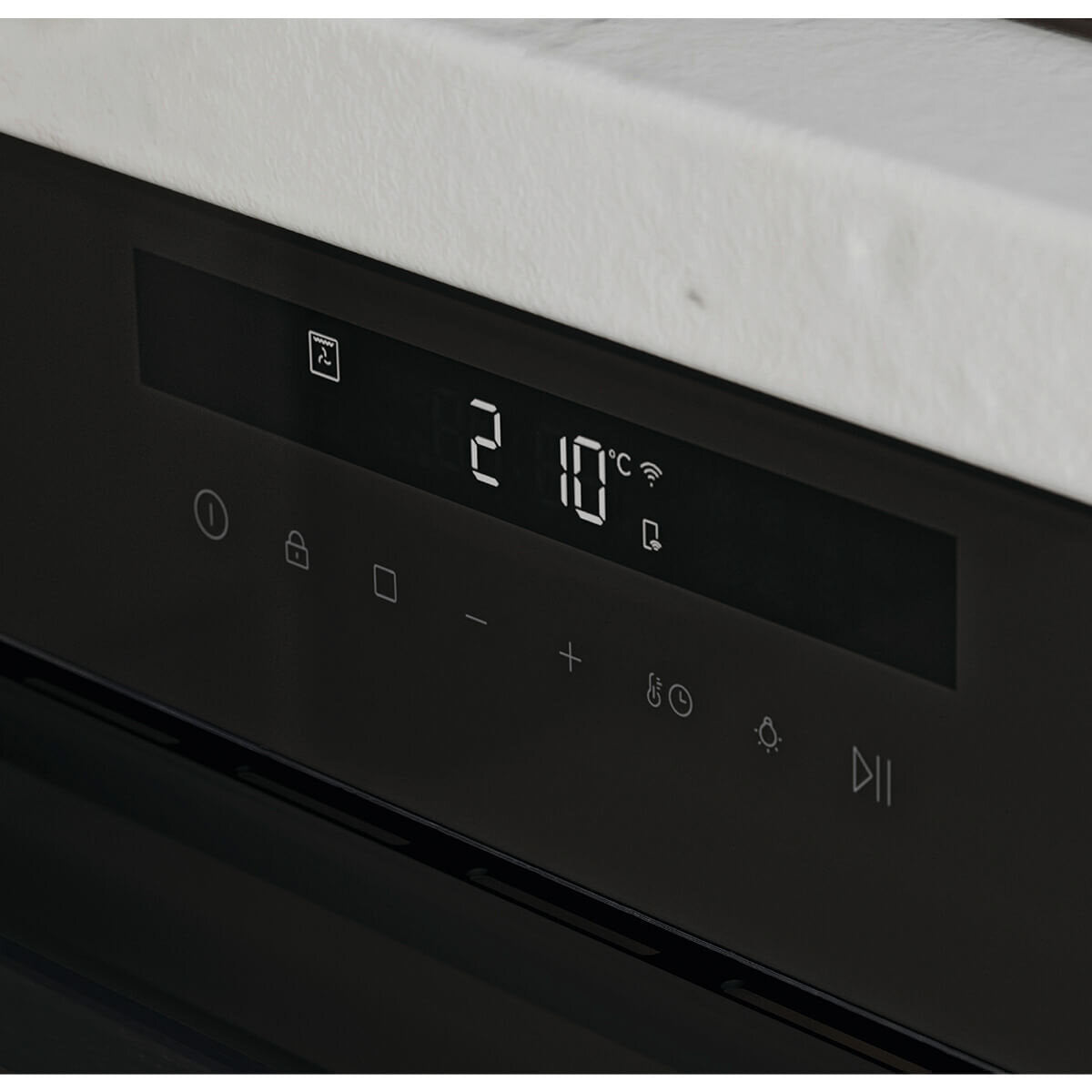 The oven's wide format offers multiple shelf positions to accommodate large trays or multi-dish cooking. Its intuitive LCD display and simple control dial make selecting functions and setting timers effortless. For added convenience, Wi-Fi SmartHQ compatibility enables remote monitoring and control from your smartphone, so you can preheat the oven or check cooking progress from anywhere in the home.