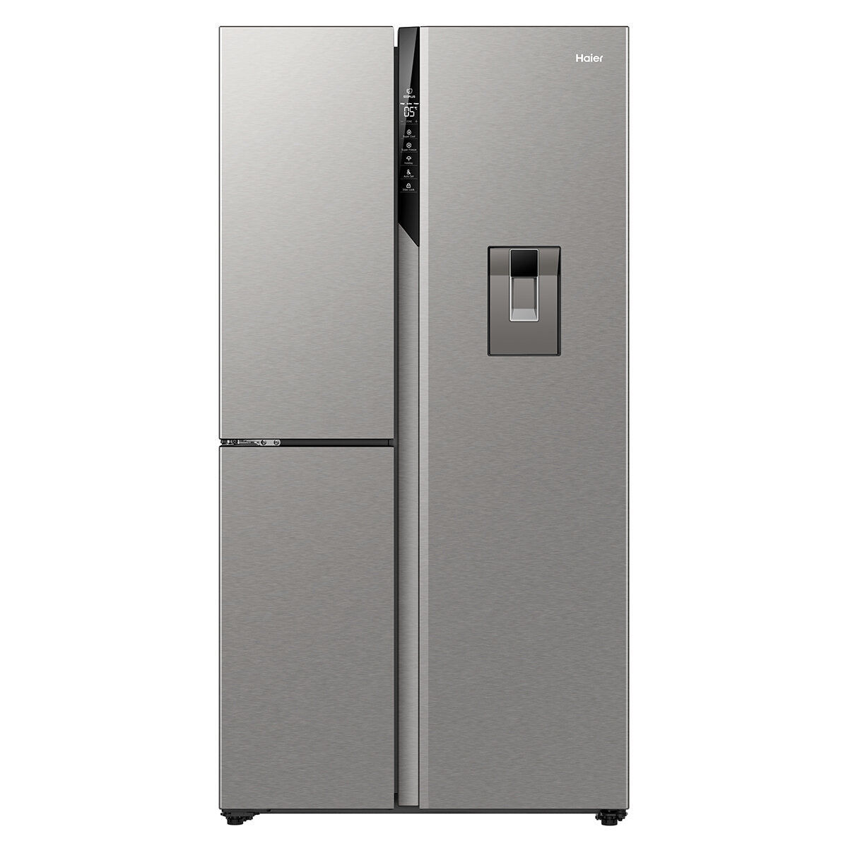 Haier 574L S+ Three Door Side by Side Fridge Non-Plumbed Water Dispenser Satina Silver HRF575XHS