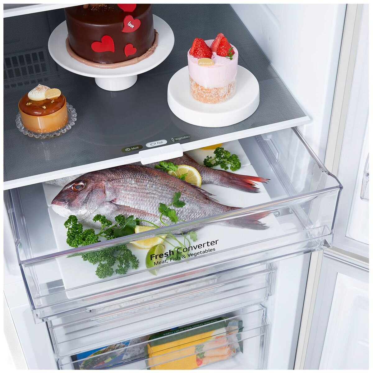 Inside, the thoughtfully designed layout includes dedicated storage zones to suit different food types. The Fresh Converter compartment allows users to customise conditions for meat, fish, or vegetables, helping extend shelf life and reduce waste. Bright LED lighting enhances visibility, making it easy to locate items quickly.
