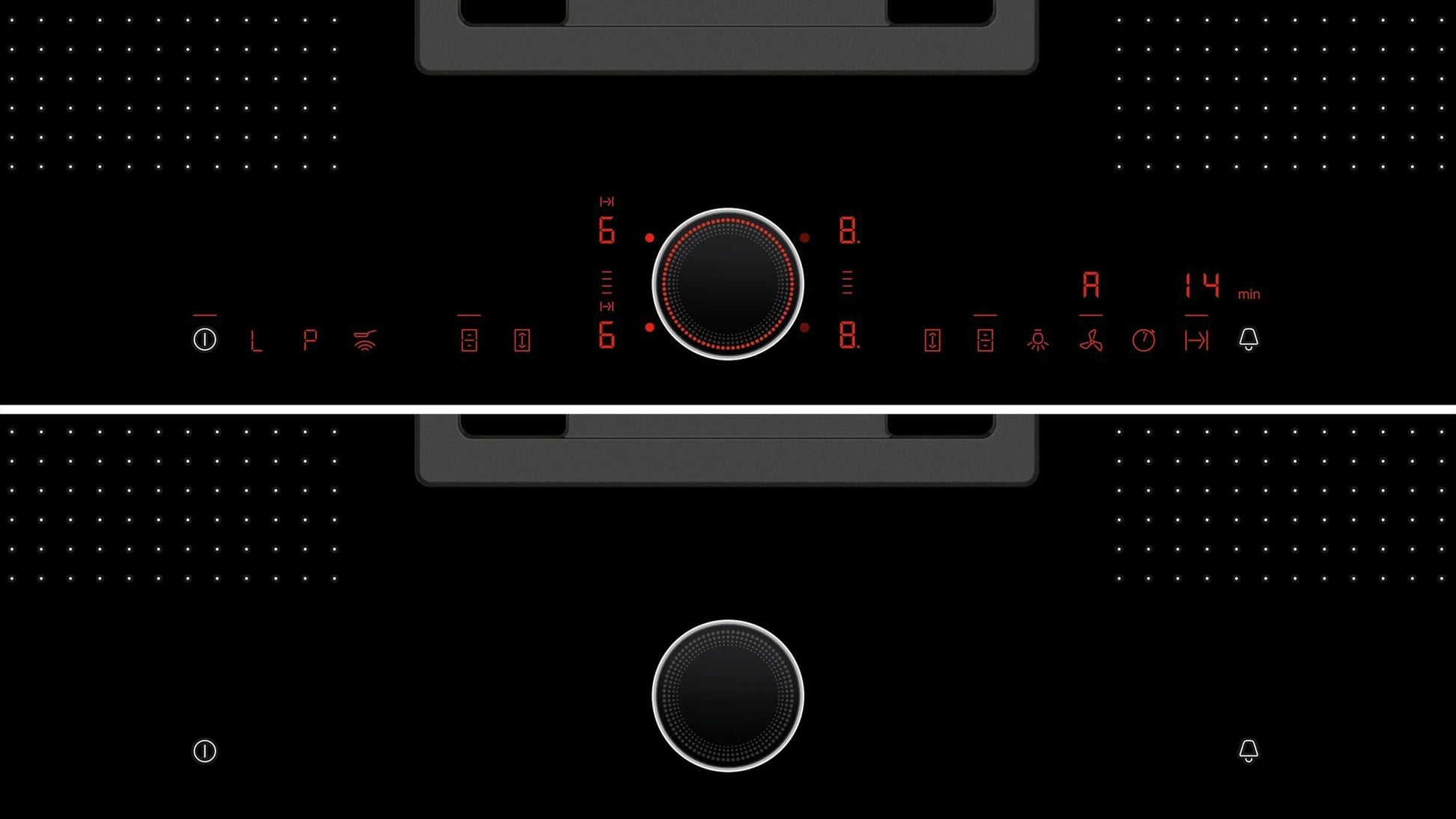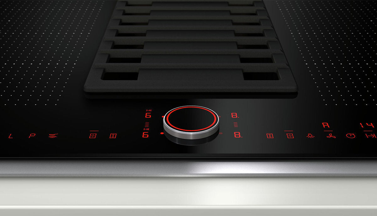 ● FlexInduction - The FlexZone lets you place your pots and pans anywhere you want and heats them exactly where they stand. ● TwistPad® Fire - Removable, magnetic, illuminated control knob that gives you precise, convenient control over all cooking zones. And to make things even easier, only the selectable functions are illuminated. ● PowerMove - The FlexZone is divided into three heating zones: boiling in front, simmering in the middle and warming in the rear. ● Sensor-controlled automatic system - Cooking is pure pleasure thanks to fully automatic hood control when the cooktop is switched on. ● Automatic air sensor - Automatically adjusts the extraction rate to match the situation in the kitchen ● QuickStart - Quick and automatic first pot detection ● 2x Flex zones ● PotBoost function for all cooking zones ● PanBoost ● 17 Power levels for each cooking zone ● Residual heat indicator: Digital 2-step ● Power management function ● Wipe protection function ● ReStart function ● Keep warm function for all cooking zones ● Black ceramic glass with stainless steel flush-fitted trim