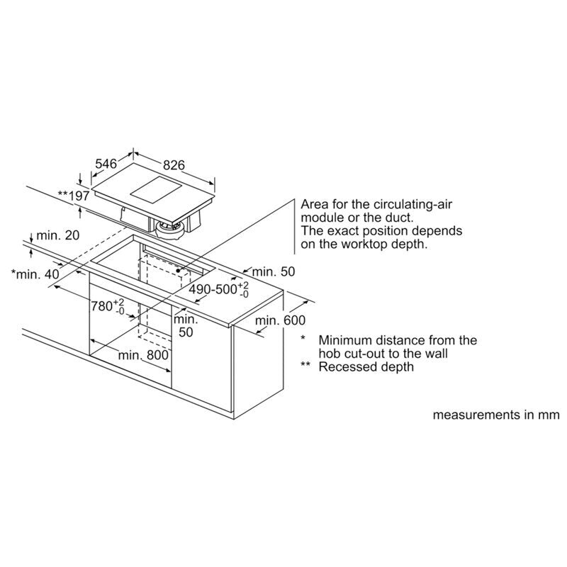 Ventilation ● Extraction rate according to EN 61591: - min. Normal use 169 m³/h - max. Normal use 551 m³/h - Intensive setting 684 m³/h ● Performance in re-circulated extraction: - min. normal setting 139 m3/h - max. normal setting 557 m3/h - Boost-/Intensive setting 618 m3/h ● Noise min./max. Normal Level: 39/69 dB ● Suitable for ducted or re-circulated extraction (Accessory is respectively required) ● For ducted extraction extraction kit (accessory Z8100X1) required ● For recirculated extraction cleanAir recirculating kit (accessory Z8200X1) needed ● Fully-automatic extraction functionality with air quality sensor ● Fully-automatic fan speed level control or optionally manual control by TwistPad® Fire user interface ● 9 Fan speed levels plus 1 intensive setting ● Automatic 30 minutes run-on function ● Average Energy Consumption: 53.5 kWh/year ● Cast-iron air inlet grid, heat resistant, dishwasher safe ● Removable and detachable grease filter and liquid collector unit, dishwasher safe ● Liquid spillover safety tank, ca. 2.000ml capacity, Twist-off lock, dishwasher safe ● Saturation indicator for grease filter ● Saturation indicator for cleanAir odor filter ● Length wire connection: 110 cm ● 7.4 kW Total connected load