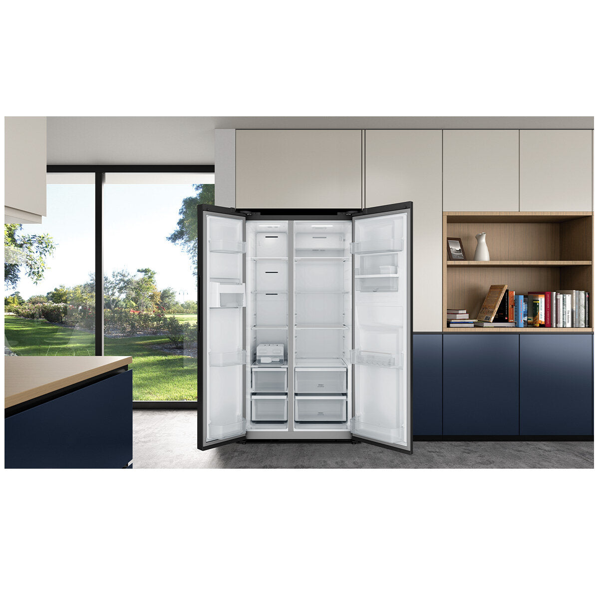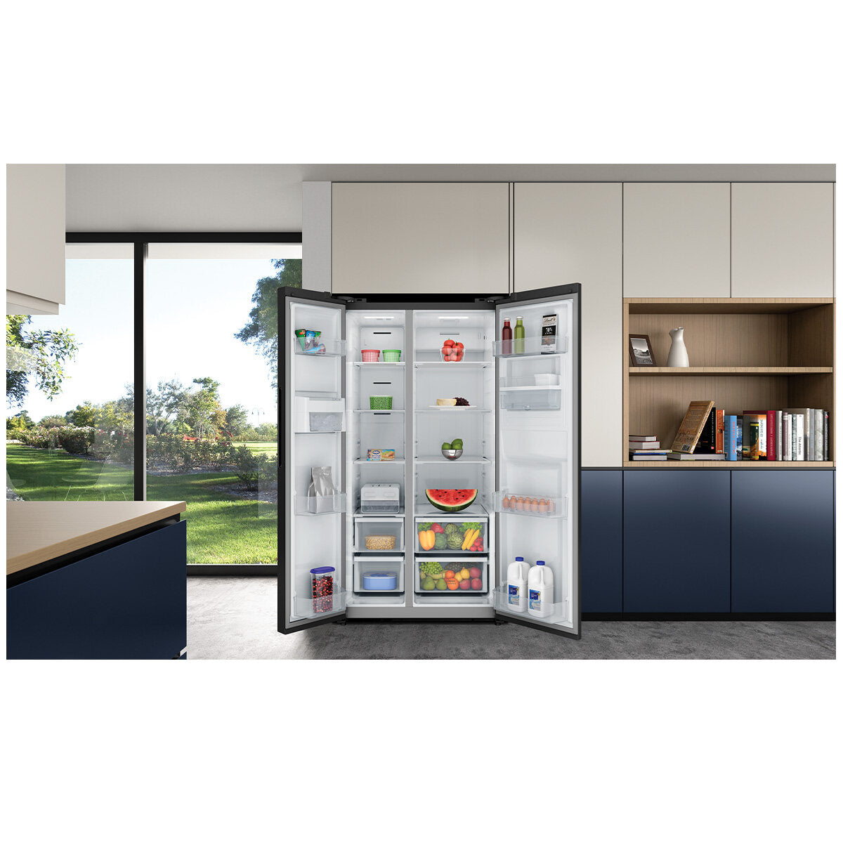 Westinghouse 619L Side by Side Refrigerator with Non-Plumbed Water Dispenser Matte Black WSE6240BB